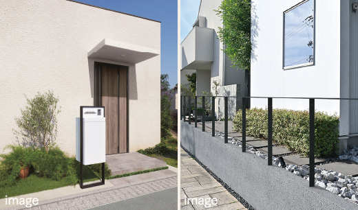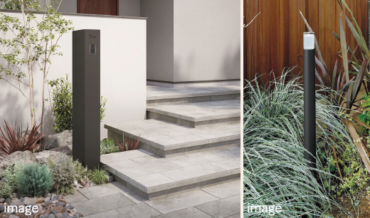 良好な景観及び防犯対策のため、ガーデンライトを2基設置します。門柱は自由にお好みのスタイルをお選びいただけます。