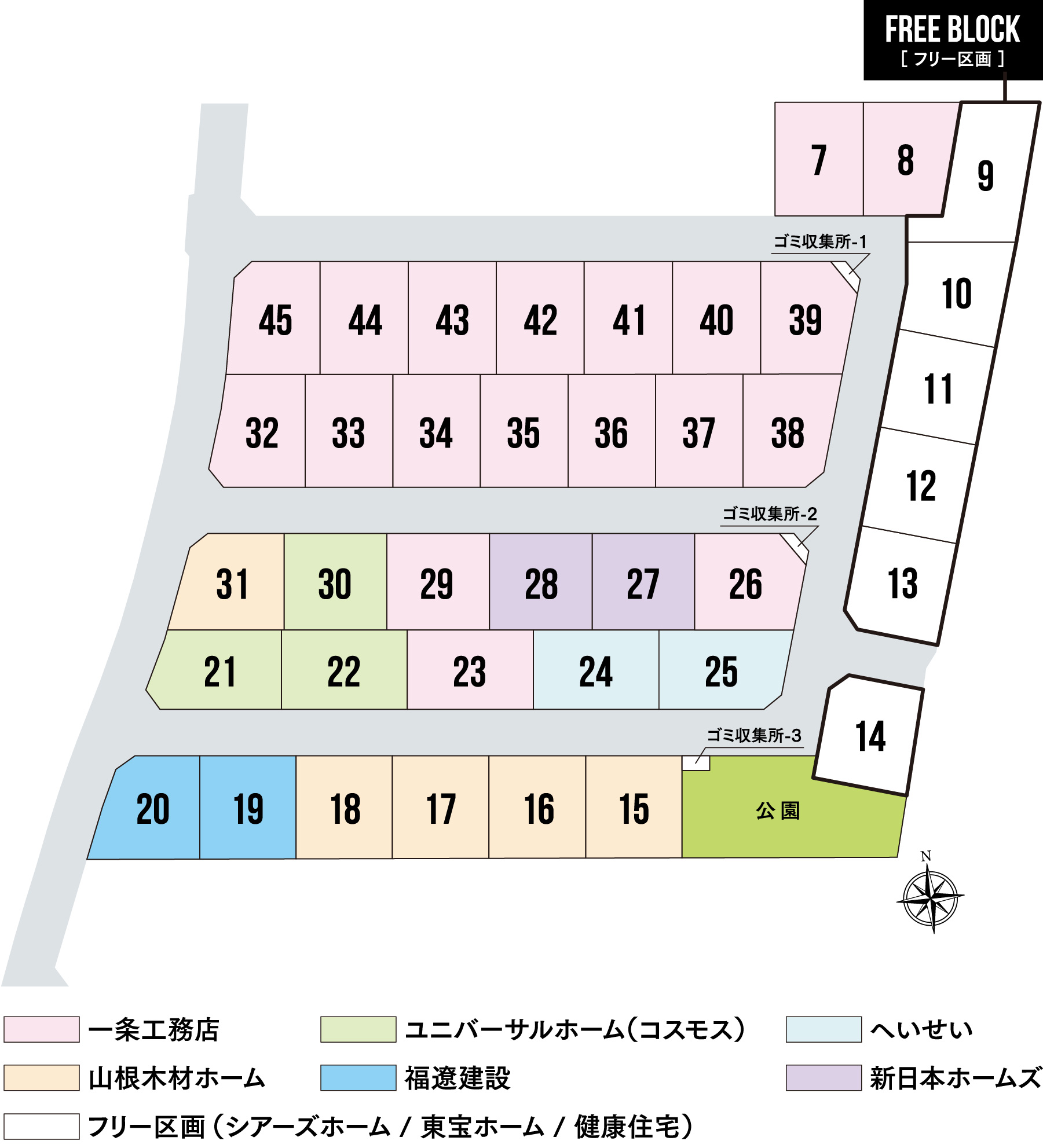 フリー区画は下記のハウスメーカー3社からお選びいただけます。